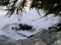 雪はだいぶしただまってきて、大池正面の山の急な斜面の一番に雪崩が起きる所は落ち、雪原をカンジキなしでもぐりながらもなんとか歩けるようになってきました。館長とMnが地震後崩れた斜面(新しく水道管を伏せた斜面)の方を探索した時に、木の根元付近の土が一部出ている近くで新しく伏せた水道管を発見しました。土砂で管が潰されてとか外れたとかで水は出ないだろうと思っていたところが、管を切ったら水が少しながらも一定量流れ出てきた。その管は生きている!ということで、ともかく水源を探し出すことを館長は決定した。 3月16日、山の下から見ていると、あそこも、あっちも、そこも、今にも雪崩が起きそうで、心配で、できれば行かないでほしいと言葉に出しても、「下から見ると崩れてきそうだけど、実際上は大丈夫だから、危ないところは行かないから」と館長は何度も言いながら、Mnを助手に山へ向かった。今にも壊れそうな音をたてて、黒煙を出しながら、雪山を切り崩して足場を作りながらユンボは上って行きました。3mの山の雪の下19日にはついに小水槽発見!水源から引っ張っていると思われる水道管も見つけだし、少しながら水がきていることが確認できた。21、22日には道路脇の段切りされた山の中腹にある貯水槽を探しだし、掃除を行い、水源からの水道管に直接山の新管がジョイントされ、貯水槽へ水を引っ張った。24日には月見亭の閉めていた水栓を開栓。美術館を含め各家まだ完全に復旧とまではいきませんが、水の出が悪くなってから83日、水が完全に出なくなってから55日振りに水が出ることに。<<詳細はMn君の水道日誌をご覧いただければと思います>>素人ながら本当によく頑張ってくれました。蛇口をひねると水が出る、ただそれだけなのに何てありがたいのでしょう。 |